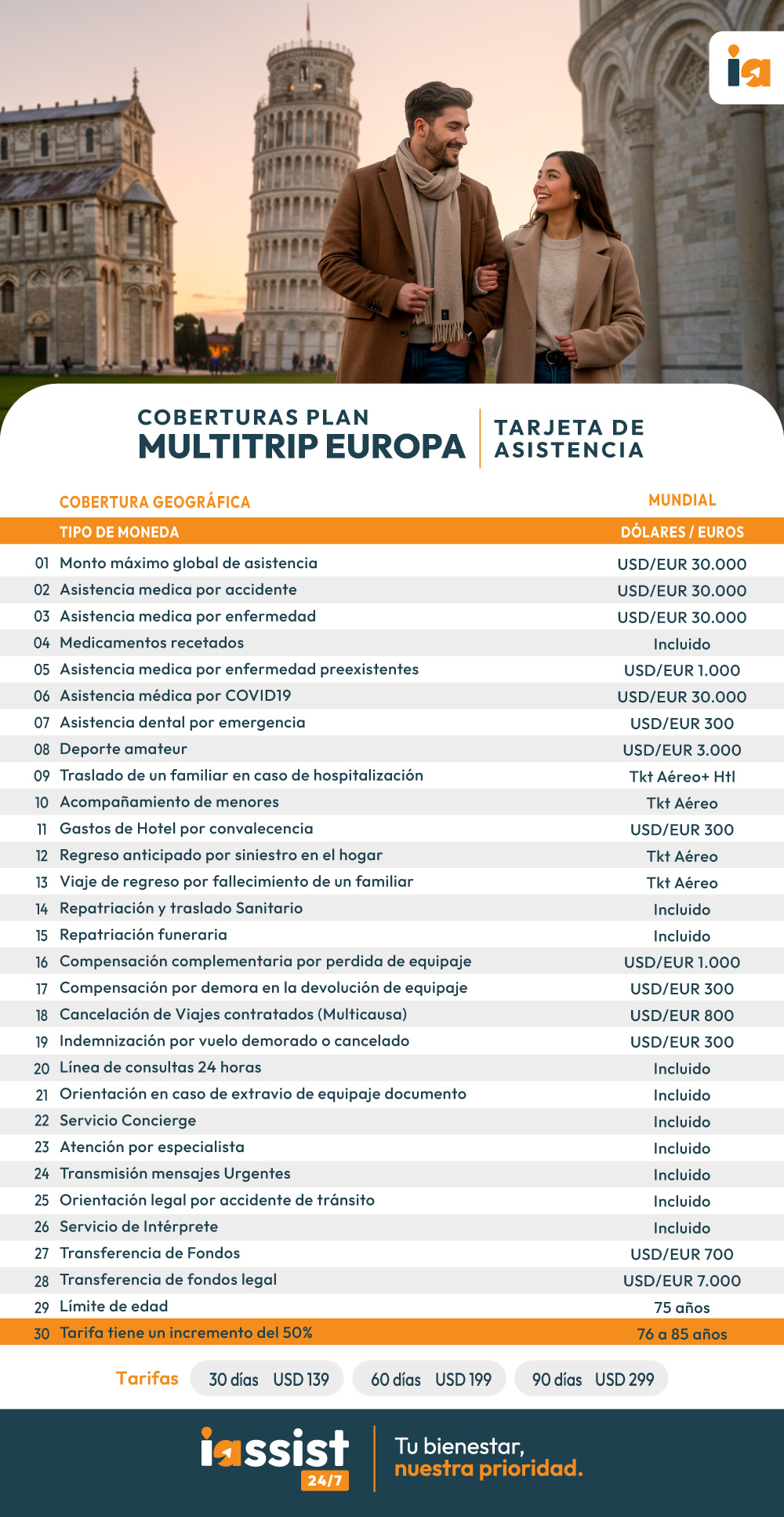 Disfruta en todos tus viajes de tranquilidad y seguridad con nuestros planes de asistencia. Obtén acceso rápido a servicios clínicos e integrales de calidad, seguridad y garantía.